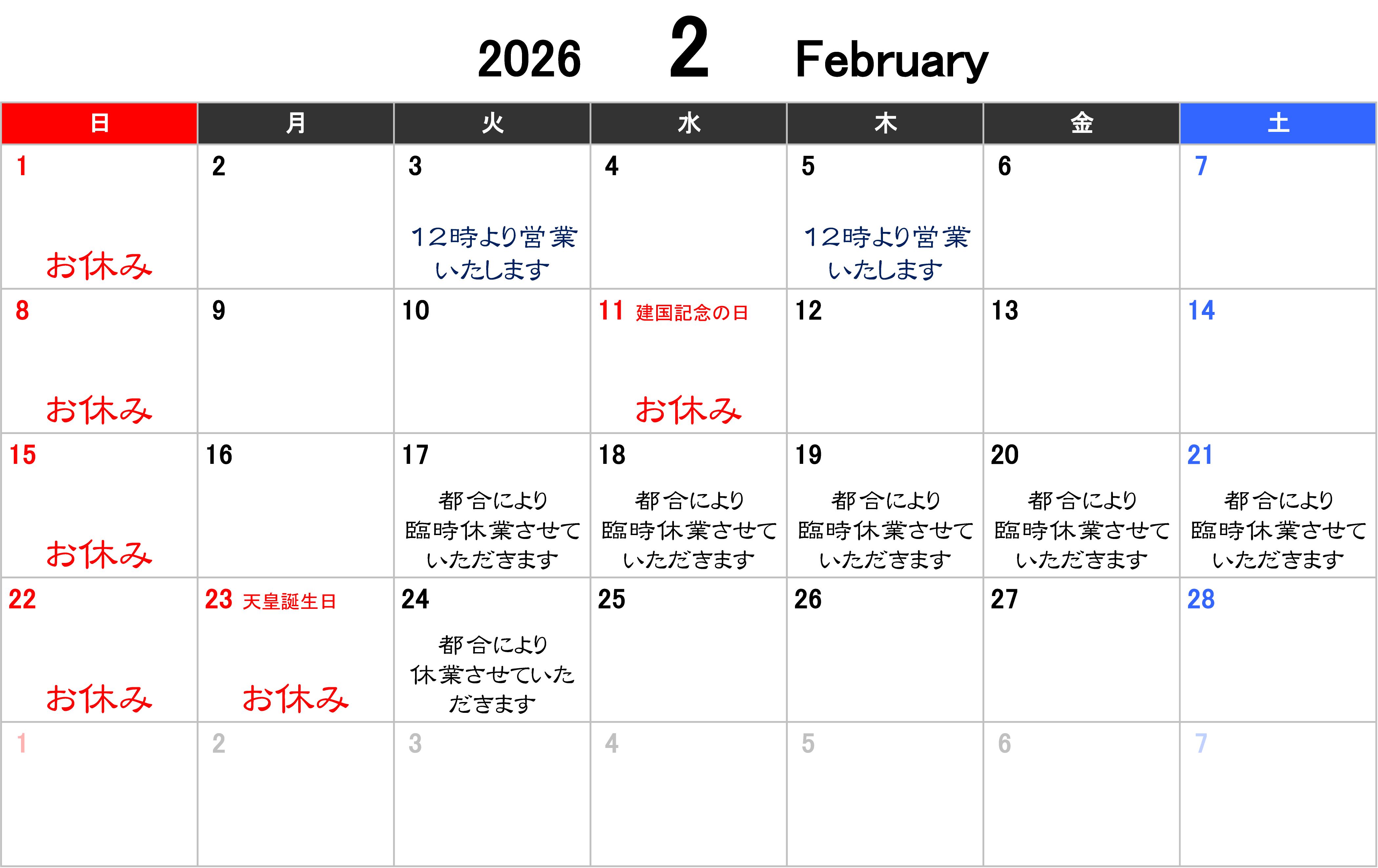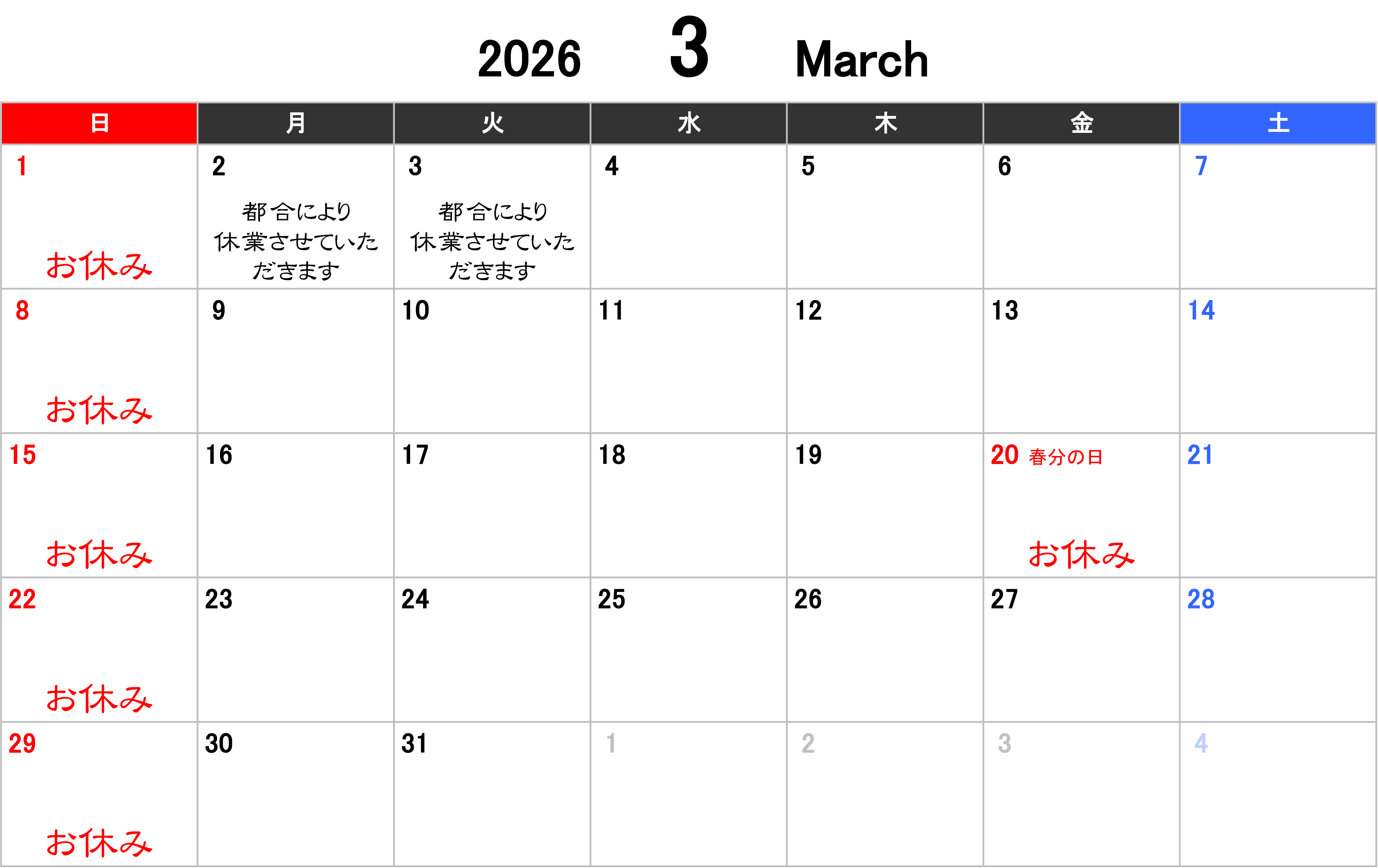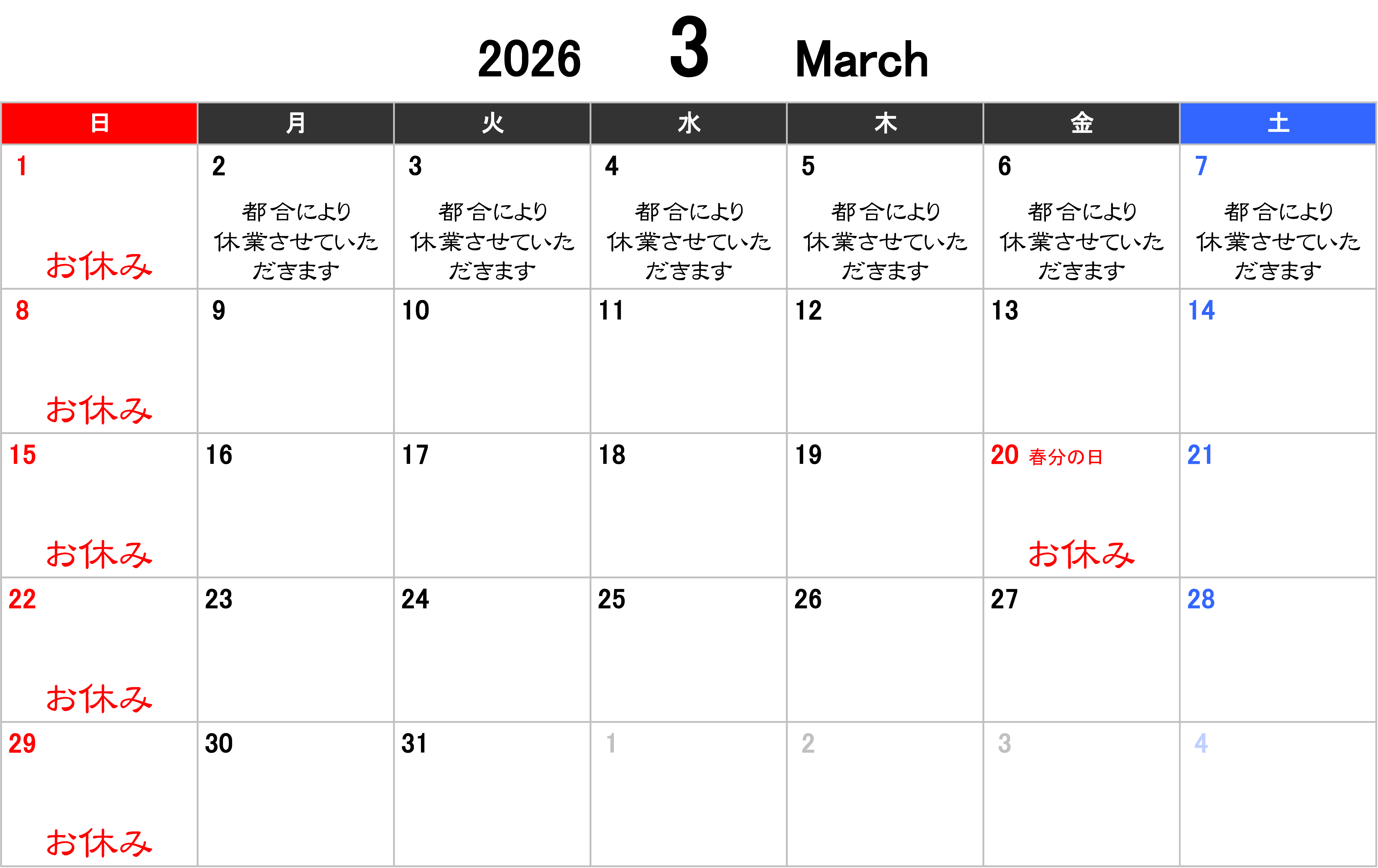 日曜、祝日