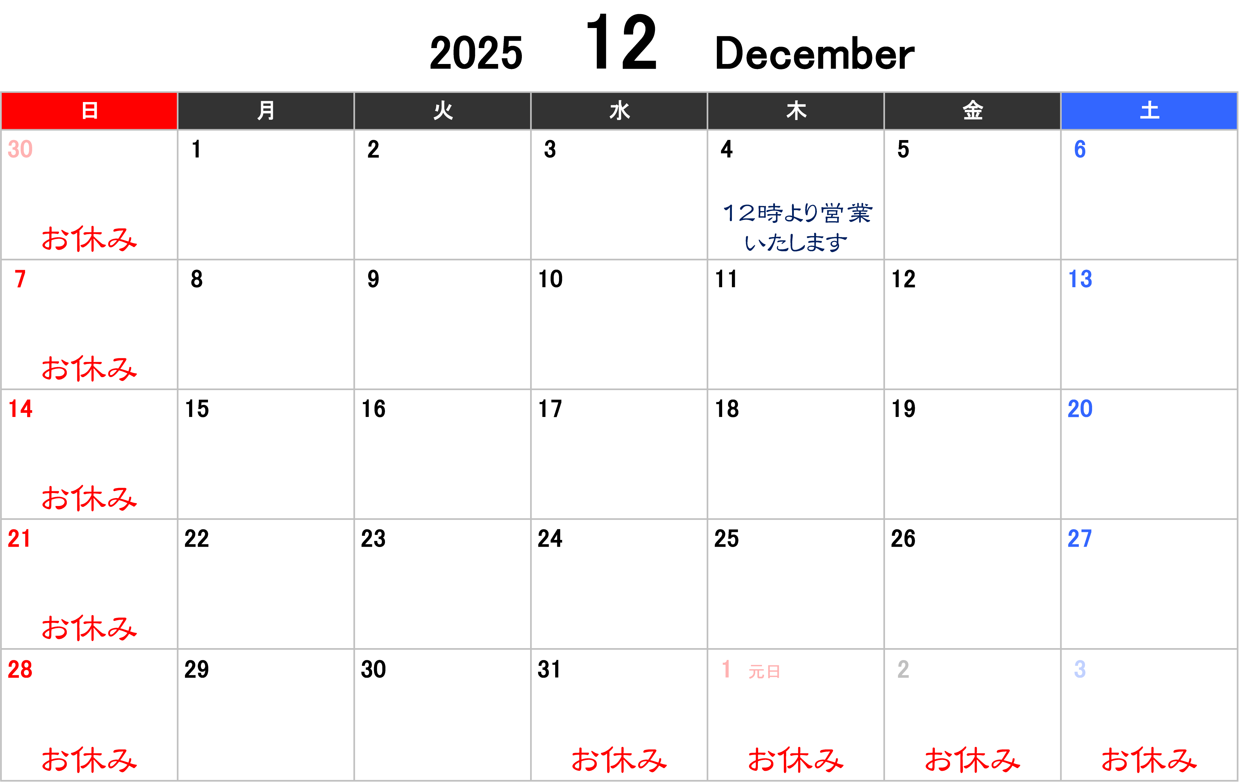 下記の日をお休みさせていただきます。